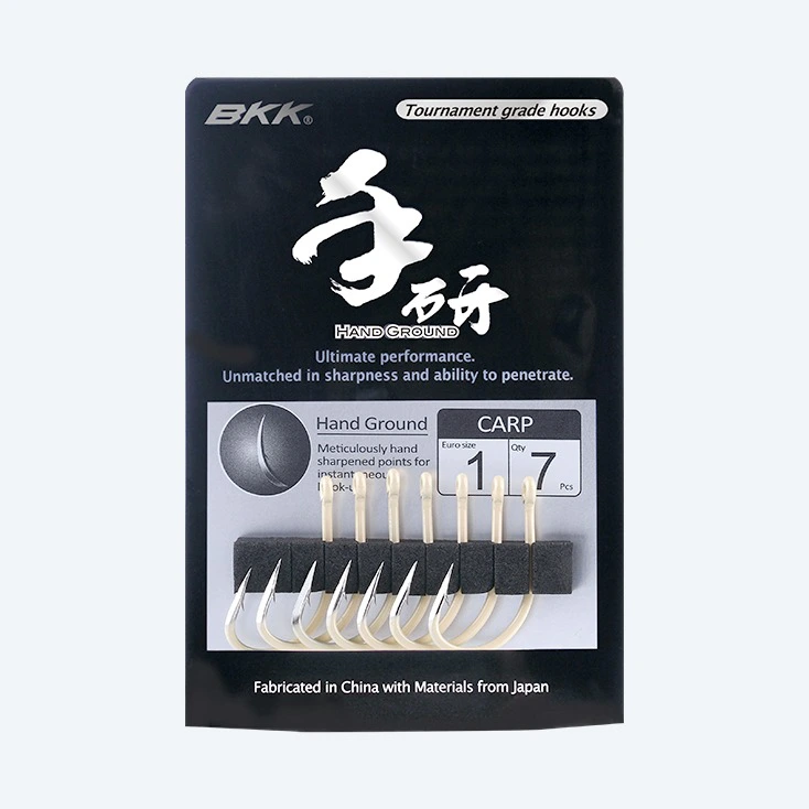 It features BKK’s signature Hand Ground hook point; extremely sharp, it reduces piercing resistance and penetrates through the carp’s jaw easily. BKK’s M-series painting technology increases the hook’s concealment.