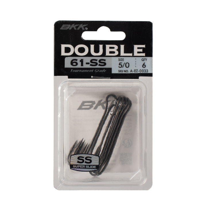 "The AGL Double-61 SS is a medium-wire, long-shank double hook designed for rigging silicone baits of various sizes and confidently targeting trophy-sized fish. Its elongated shank positions the hook points about one-third of the lure’s body length, optimizing hook-up ratios and maintain ing bait mobility. Equipped with a Super Slide (SS) finish and an extra-sharp needle point, this hook ensures excellent penetration and improves the overall hook-up rate"