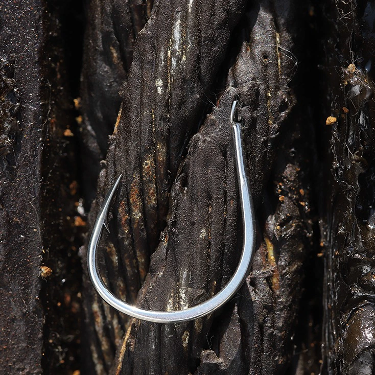 A unique forging pattern prevents the fish’s skin from being torn off over long fights, as the forging pressure is applied on a reduced portion of the hook shank, thereby strengthening the hook structure without creating edgy surfaces.