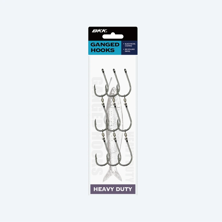 The AGL Ganged hooks are specifically developed for presenting strip bait or whole baits with the added advantage of multiple well exposed hook points, which results in a better hook up rate. Ganged hooks also lessen the chance of the fish's teeth coming into contact with the line thus reducing bite offs.