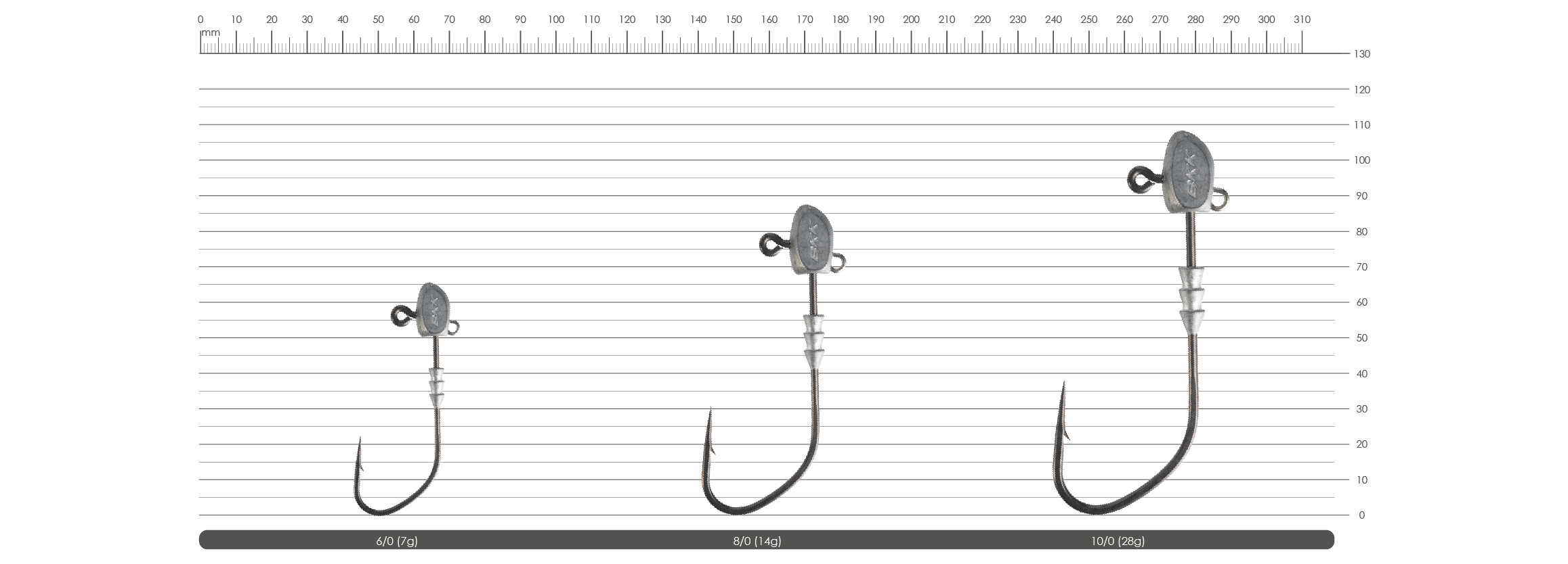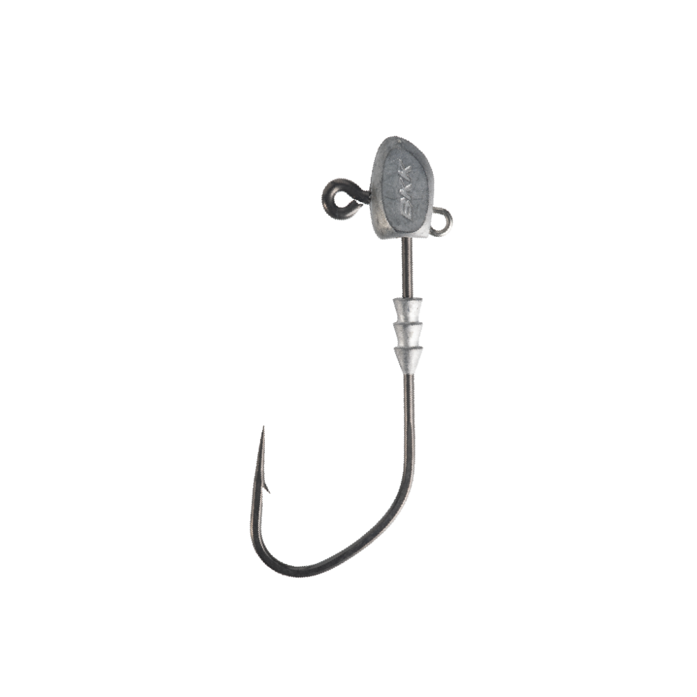 convenience, hook size and weight are stamped on the side of the head for quick identification on the water"