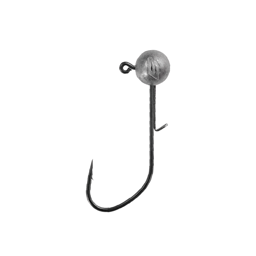 A versatile round jig head molded around a light wire jig hook featuring a super-sharp needle point