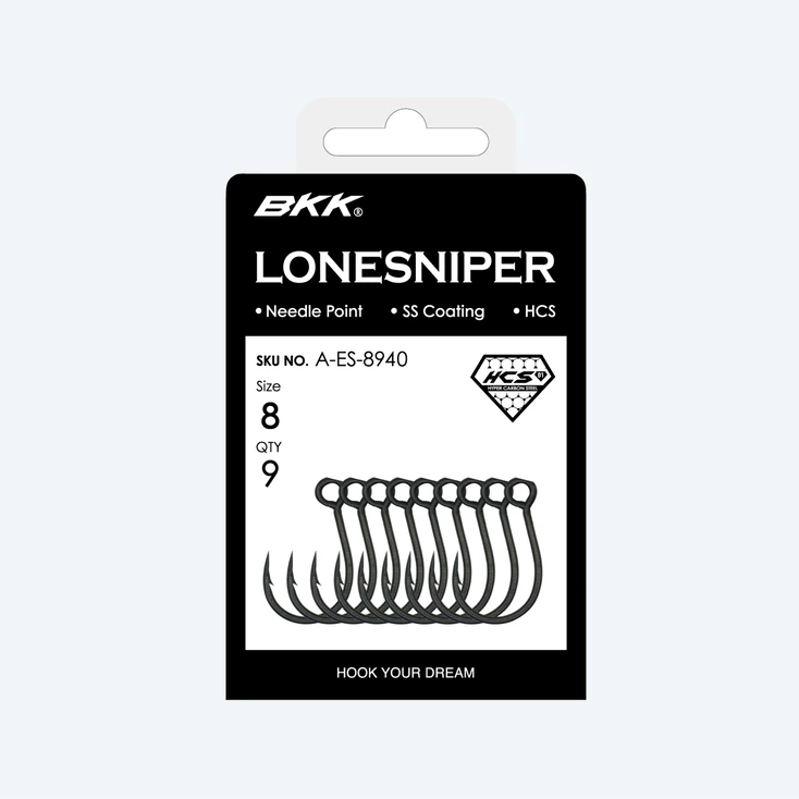The AGL Lonesniper is an inline single hook developed for freshwater and saltwater inshore applications. Features include a needle point and SS (Super Slide) coating that provides cutting-edge sharpness and penetration performance. The peculiar hook shape maximizes the hookup rate and maintains the grip throughout the fight. In addition, the AGL proprietary HCS (Hyper Carbon Steel) enables the overall structure to achieve unprecedented levels of strength.