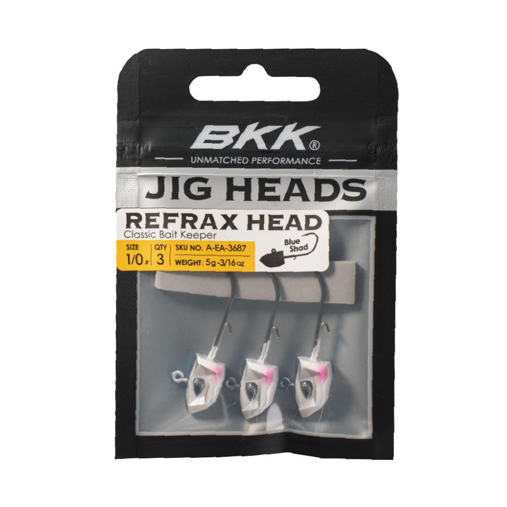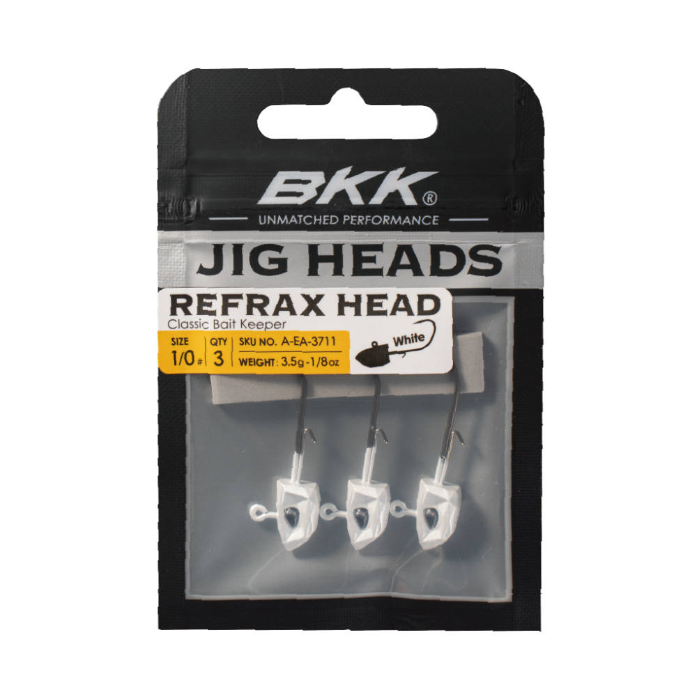 The AGL REFRAX Jighead is a high-performance jig head designed with a multifaceted profile, lifelike 3D holographic eyes, and custom paint finishes that accurately mimic various baitfish species—perfect for fooling even the most experienced predators. Its dual-wire bait keeper securely holds soft plastics in place without tearing, helping you extend the life of your bait. Crafted from Hyper Carbon Steel (HCS), the REFRAX Jighead offers enhanced strength and durability compared to traditional high-carbon steel, making it ideal for landing trophy-sized fish. A Super Slide (SS) coating and extra-sharp needle point ensure smooth penetration and maximize hook-up efficiency. Available in a range of weights and hook sizes, the REFRAX Jighead is perfect for both swimbait fishing and vertical jigging at various depths. For added convenience, weight and hook size are stamped on the belly for quick identification.