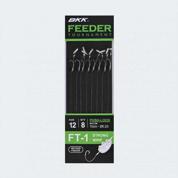 The AGL FT-1 Feeder tournament Rigs are a series of hook lengths developed to offer instant penetration and maximum strength when catching big fish on the feeder. Equipped with BKK's signature SS finish, these barbed hooks are accurately pre-tied to high quality lines and feature different bait keepers to rig all kinds of bait like corn, pellets, bread or meat.