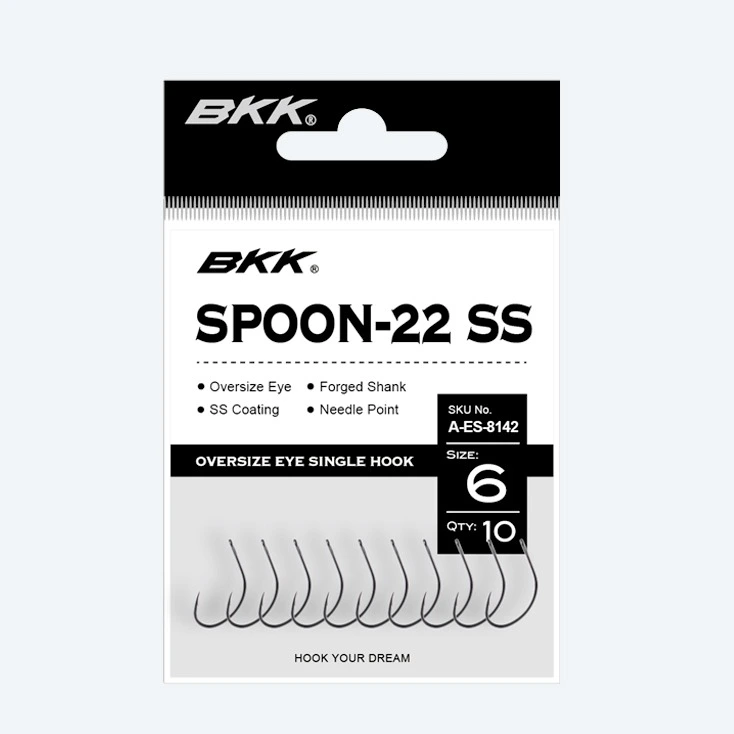 The AGL SPOON-22 SS is a medium/heavy wire spoon replacement hook great for large trout and salmon both in fresh and saltwater environments. The hook features an oversized eye for better mobility, an in-turned point to prevent snags, and AGL super slick SS coating for instant penetration. Designed with seatrout fishing in mind.